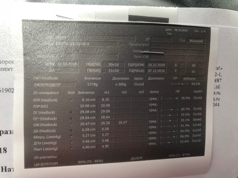 С утра побежала к Пятых на УЗИ. Все оказалось хорошо! Малышка курносая растет, даже волосики на голове рассмотрели!)))) По некоторым параметрам она на 32-33 недели, по остальным на неделю больше срока. Сказали, не покупать маленькие вещи, будет крупной. сейчас почти 1800 грамм весит :)