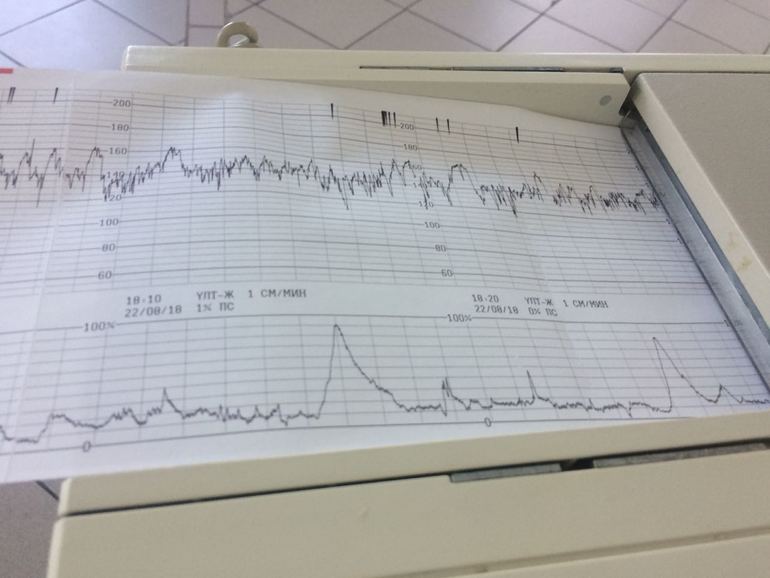 Там отображается по сердцебиению плода- это верхняя строка, нижняя- тренировочные схватки-высота- это зубец вверх- надо посмотреть высоту- она до 100 доходит, тренировочные - хаотичные и не продолжительные, если пульс в норме и это не схватки, то все хорошо) это моё ктг после стимуляции,ночью родила