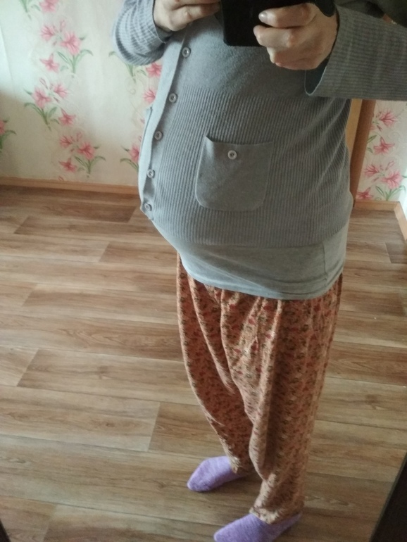Живот стал совсем большим, куртки стали совсем малы в талии и я перешла на зимнее пальто, а сегодня выпал снег. Так что в пальто даже не жарко.