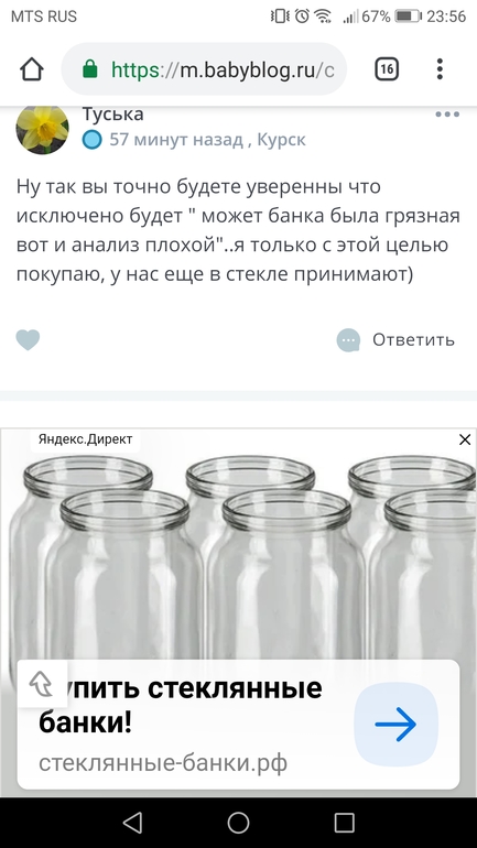 Анализы, скринингиНочью в воскресенье внезапно вспомнила, что утром-то кроме крови и мочу сдавать. А последний контейнер извели на анализы дочки. И была у меня в шкафу маленькая стеклянная баночка. От безысходности я ее обработала, утром использовала по назначению поехала все это дело сдавать. Поставила банку на место в ЖК, только вышла, слышу гневный возглас - чья это стеклянная банка? Моя, говорю, забыла контейнер купить. Показывают на объявление, гласящее, что только в пластиковой таре принимают. Анализ приняли, себе там перелили в пробирку, но банку сказали забрать и самой выбросить вне ЖК, так как у них только пластик утилизируется (ну или все, что горит). Вот этот довод очень логичен, банку я забрала, санитарка позвала меня, чтобы дать мне пакет, чтобы в сумку спрятать. Но по пути она продолжила объяснять, почему банку взять нельзя им в принципе, я, глядя на неё прячу банку в пакет... и банка летит мимо! На каменный пол! Куча осколков, их сразу собрали. И ни слова грубого за все это действо я не услышала! Все предельно вежливо и даже ласково. Хотя в 7 утра на такую как я, я сама могла бы и огрызнуться :) Я, конечно извинилась, пакет с осколками они сказали ладно уж оставь :) и добавили - ну и поэтому стеклянные банки тоже нельзя... а бабушке после меня они сказали - да хоть из-под газировки бутылку, но пластиковую несите! Это я к чему все пишу - раньше часто тут слышала гневные вопли, что обязаны принимать в любой таре мочу. Но вот теперь так, утилизацию проводят сторонние организации и они диктуют правила. Так что выбрасывайте последние баночки из-под детских пюре :)