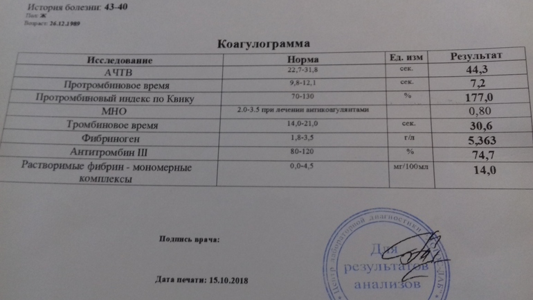 Вам бы гепарины уже не помешали. К гемостазиологу нужно срочно обратиться. Может по телефону связаться или на почту кинуть ему результаты