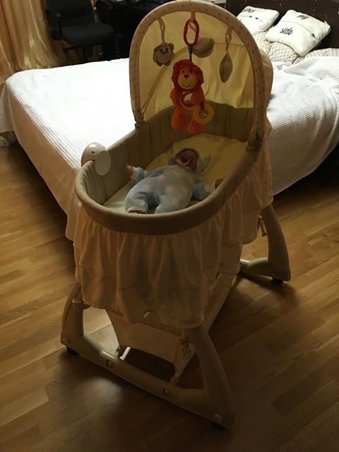 3. Кроватка - от Мииной избавились, на первое время будет люлька, потом уже купим кроватку ближе к делу. Наполнение в стандартную кроватку есть - матрас с наматрасником, бортики, простыни на резинке.