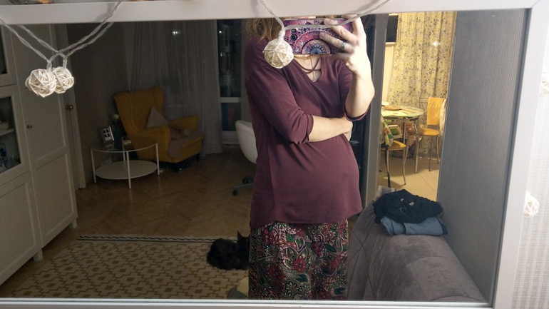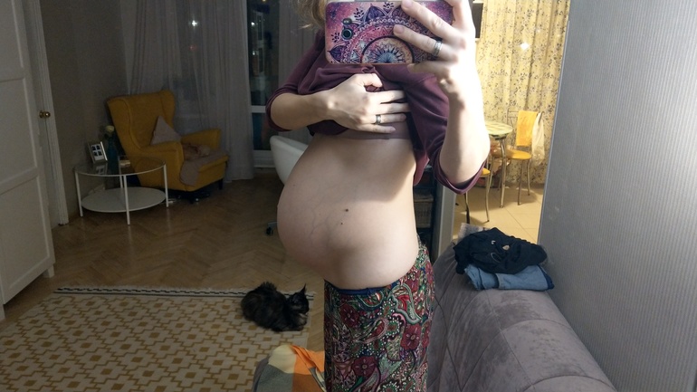 Наши будни, наши неделькиИ я задыхаюсь( не всегда. Не могу нормально спать. То туалет..то гуляю по квартире.то коты спать мешают. Очень устаю...так как еще работаю. Осталось 2 недели- 4 смены по 24 часа. Уже чуть ли не из календарика вычеркиваю дни) И останется чуть больше месяца...на отдых)? Нет конечно..на косметический ремонт((( и заморочку с детской комнатой. На которую я все копила копила...а в результате все ушло на приданное малышу и житье бытье( переживательно. Первый сынок не трогал мой мочевой) зато младшенький на нем так и скачет...и часто ковыряется чуть ли не в лобке. Говорят длинный очень) Весь в папу) Зато...почти сохранил мне талию..живот немного другой..более вперед..и будто ниже опущен..но это не дает мне форы в том,что ничего не давит на желудок и диафрагму-отдышка и изжога. Верные мои спутники. Гемоглобин сдала в роддоме 145, развели панику отправили к терапевту, перед ее посещением решила пересдать- 91. Вот как так. Теперь я знаю что разведут панику ,типа железа не хватает..но в прошлый раз, я его пила..и ничего не добилась,только усугубление запоров, и то что железо ушло в депо, рожать шла с железом 56 . Поэтому жду приема, и если что пойду еще анализы сдавать.А вес все растееееет....в прошлый раз начали что то высказывать что набрала впритык..а я по вашим советам старалась мимо ушей) Прибавка 6.800 на 32 ю неделю. Запоры говорю у меня)Ну и фото пузика на память. В этот раз оно большооое)