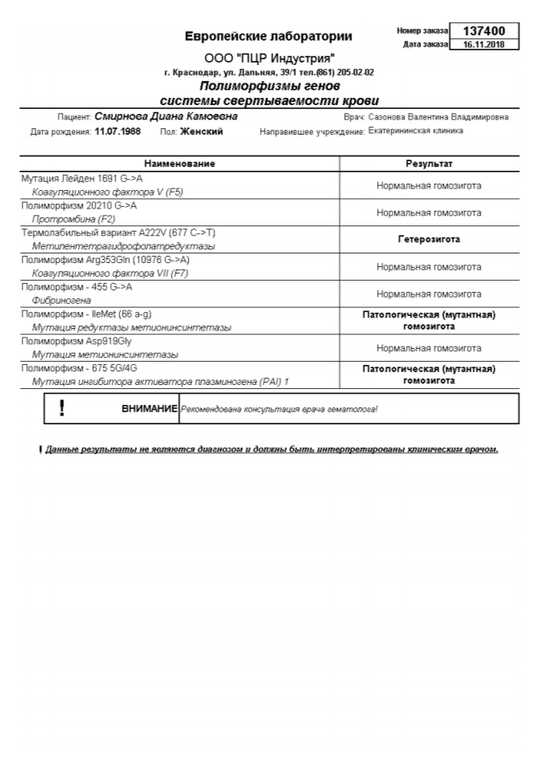 Анализы, скринингиПо результатам коагулограммы был слегка завышен д-димер, направили на этот анализ: полиморфизм генов системы свертываемости крови. Врач сразу предупредила, что ей важны первые два показателя. Они, слава Богу, в норме. Но что это за мутации в других пунктах? Кто силён? На приём аж в начале декабря. Фото под кат.