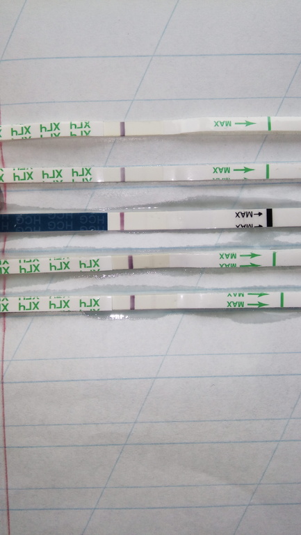 Причем все высматривают полоски эти, чтоб ярчали, сравнялись. У меня что в первую Б что сейчас - тестовая бледнее контрольной . Думаю на это вообще обращать внимание не стоит, главное факт что полоска есть