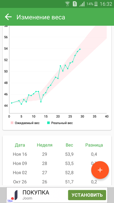 До 12 недель похудела на почти 2 кг, потом к 21й набрала их обратно, с 22 уже начались прибавки по 600-700 гр в неделю (это мноооого), но это был август, много винограда ела тогда очень 🤦🏼♀️ Потом завязала с ним, и прибавки стали меньше, сейчас вот несколько недель вес почти стоит, иногда +/- 300-400 гр за 2 недели бывает.
