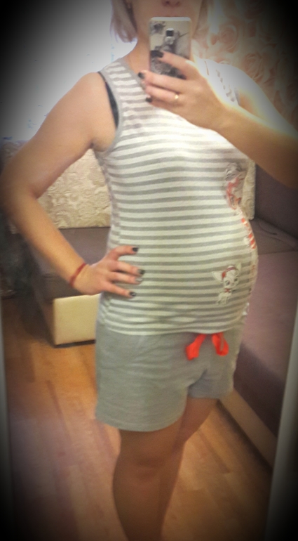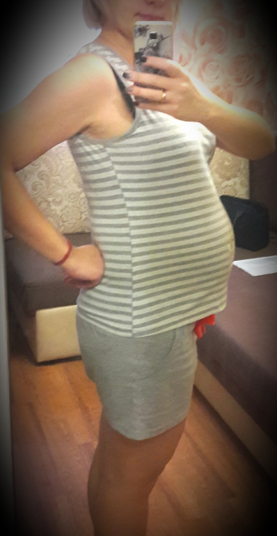 Фотопуз на 25й неделе 😊 любимый домашний костюмчик предательски трещит на мне по швам, шортики приходится носить низко...