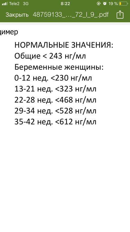 Есть целая таблица результатов Д - димера по неделям, погуглите в Яндексе.
