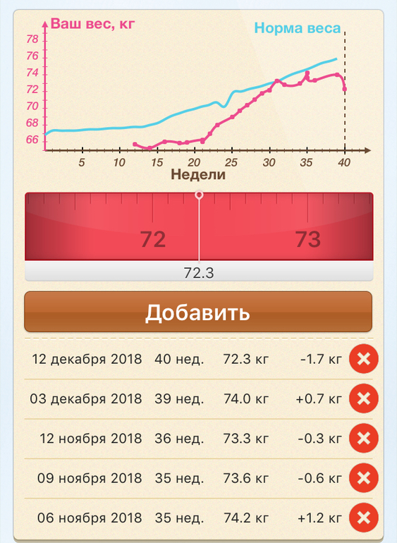 В итоге как была я в 30 недель 72,3, так и сейчас снова 72,3 😄