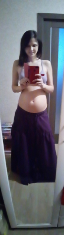 Вот животик все больше и больше, пупочек внутри уже почти плоский😀