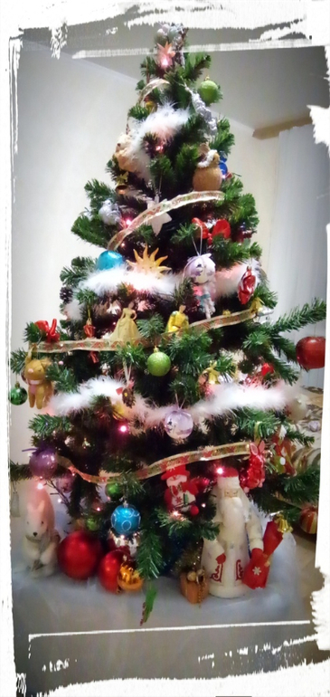 А на нашей ёлке как всегда куча игрушек. И каждый день Сашка их переселяет...