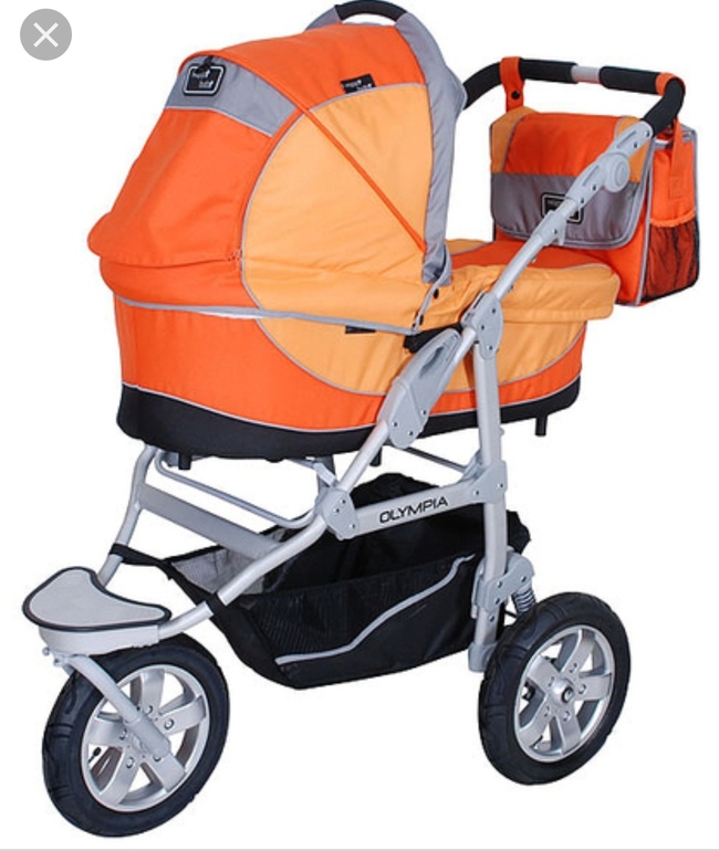 -Самое главное. Коляска после девочки. Цвет соответственно тоже ближе к девочковому. Оранжевый. Вот она. Happy Baby Olympia 2 в 1