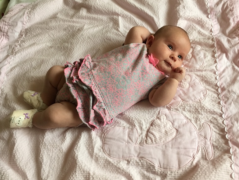 А у нас все розовое у дочек, аж до оскомины))) И фиолетовое. Когда был один сын, прям руки чесались купить голубенькое для новорожденной, но потом накрыло розовым...