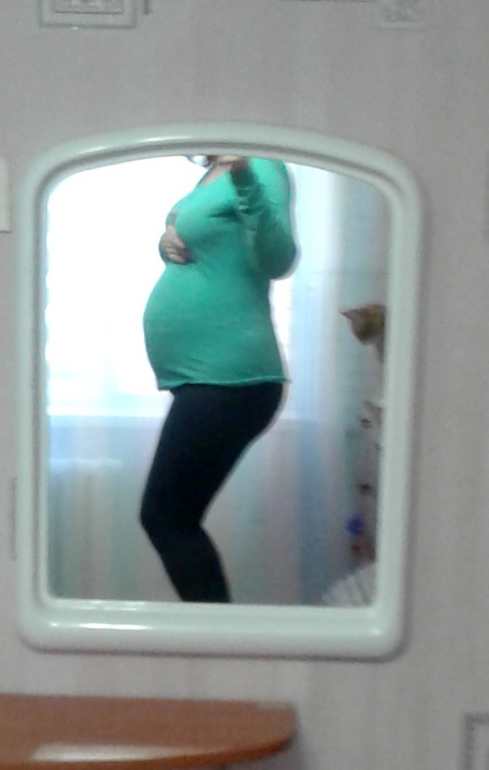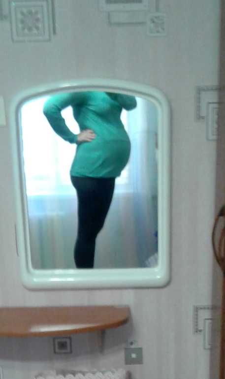 Теперь,собственно,живот.На ранних сроках я удивлялась,где мой живоооот,вроде с третьим должен вылезти раньше и больше,а его все не было и не было.Ну вот и вылез))С 20 по 30 неделю выкатился арбузище, со старшими такой только к родам был,по моему)))Хотя,может,старушка уж совсем слаба памятью стала,а фотографировалась тогда редко.
