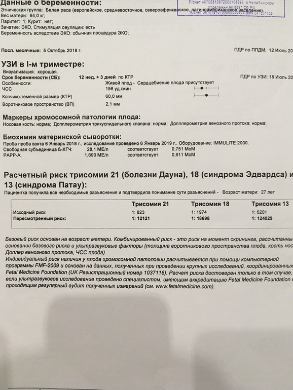 И ещё,забрала результаты скрининга УЗИ + кровь.Посмотрите,кто понимает.Какие у нас риски?