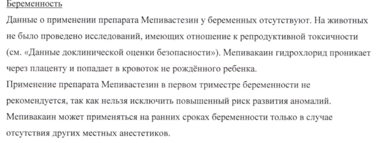 Лечение зубов в 3 триместре. Мепивастизин