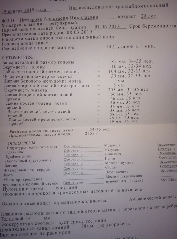 Девчонки привет. Ходила сегодня на 3 скрининг. По м сегодня 34+4 недели. Врач всё измерила, ничего не сказала, а когда я увидела замеры головы, что-то стало как-то не по себе. В прошлые УЗИ всегда на неделю опережали, а тут отстаём на пару недель. Пора паниковать?