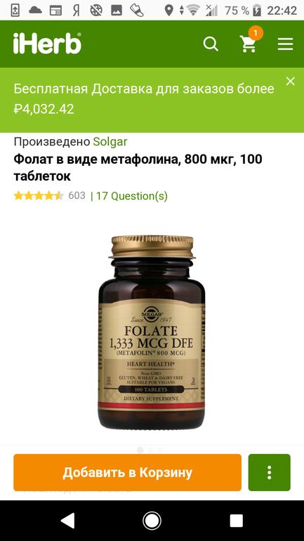 На айхерб есть форма, которая более правильно усваивается. Спроси в группе айхербрвской. Бесконтрольно принимать фолаты тоже не стоит. У моей дочери они зашкаливают, у неё в12 железо дефицитная анемия.