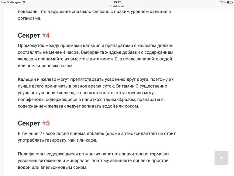 Мне врач сказал, что между приёмами кальция/магния и приёмом железа должно пройти минимум часов 5. Поэтому одно пьём утром, а другое вечером.