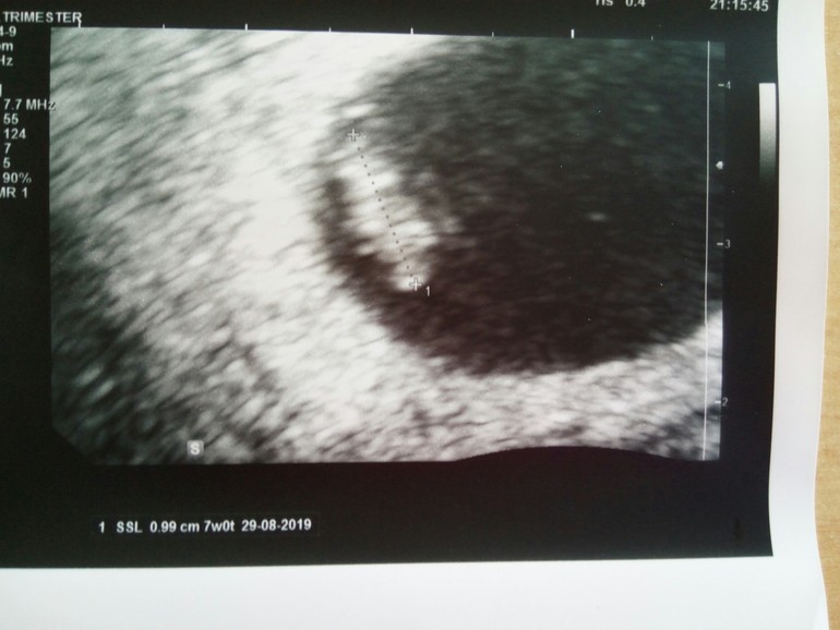 Я тоже слышала про этот метод. Вот мой снимок УЗИ 7 недель ровно. Не знаю, как понять справа или слева.