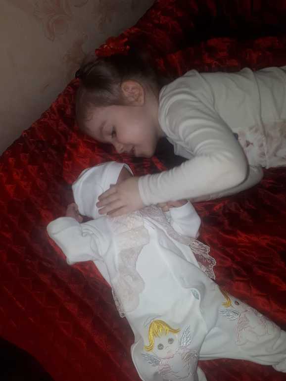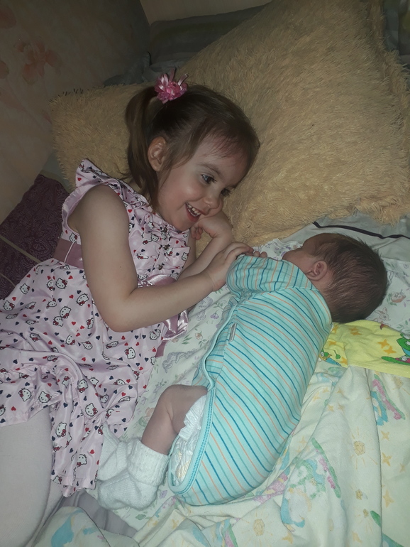 Василиса очень ждала сестренку, относится к ней с большой нежностью и любовью, везде хочет помогать. В последнее время Василиса уже привыкла, и терпеливо ждёт, когда Есения поспит и подрастёт.