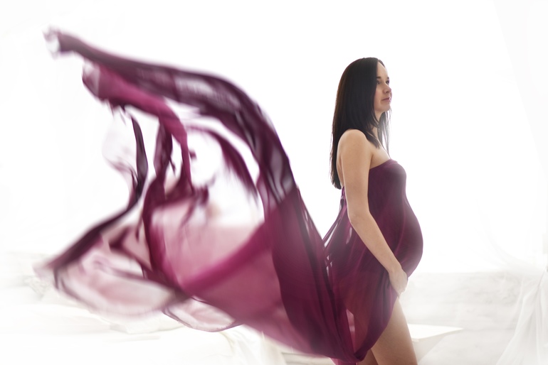 Так и лежит головой вниз, как я и думала пяткой мне под правое ребро