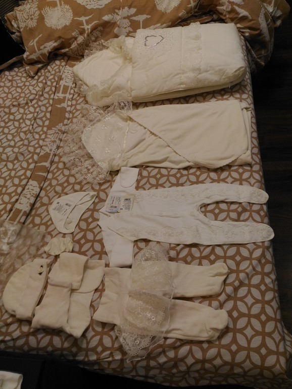 На данный момент готовы бортики, одеялко-конверт на выписку, 2 простынки на резинке.