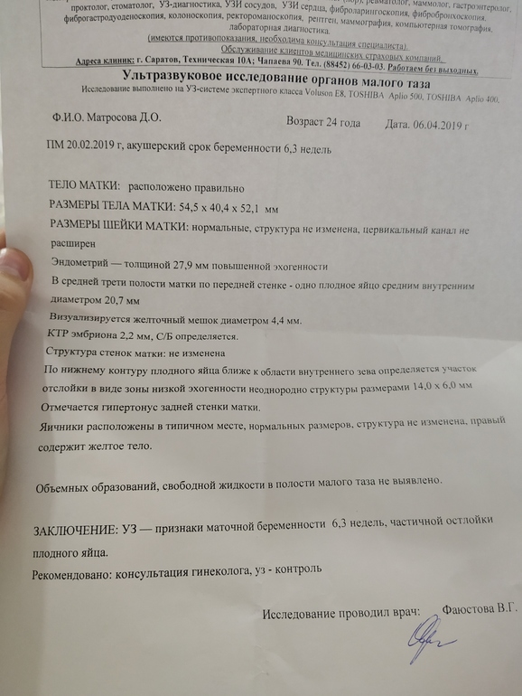 УЗИ, КТГ, доплерНа первом УЗИ свд 20,7. На сегодняшний день на втором УЗИ свд 11 мм. Как за два дня в два раза меньше стало пя. В одном УЗИ отслойки по левому конткру, в другом по нижнему. Сошлись в одном это 1 пя и есть сердцебиение. Девочки тоже проходили различия в УЗИ? Мне это важно ТК есть угроза прерывания. При этом в стационар меня не положили ТК нет болей и кровянистых выделений.