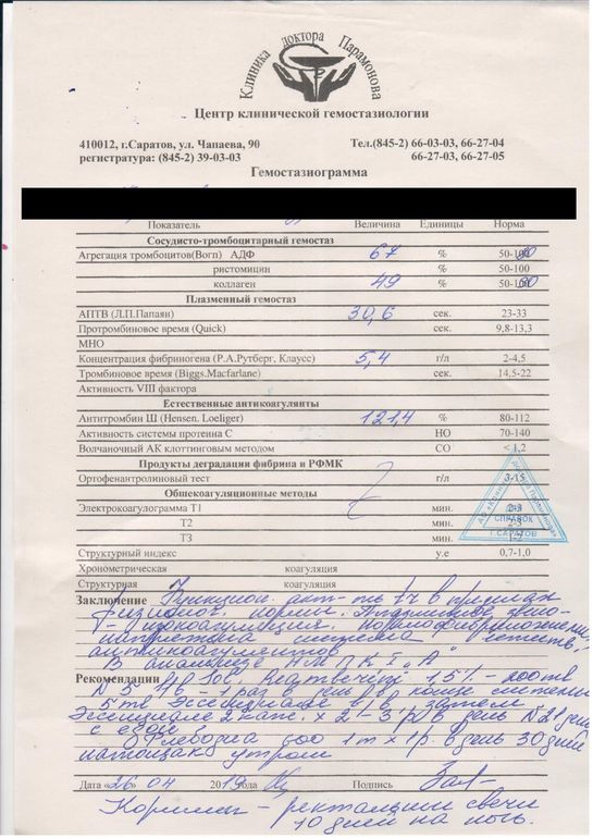 Вот все, что назначили. Коагулограмму тоже сдавала в жк, там все в норме