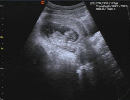 УЗИ смотрели только по животу, вагинально на этот раз датчик не вводили, все итак довольно хорошо было видно.