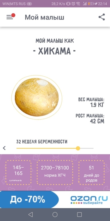 Вечер добрый ❤️ Вот и 32 неделя подходит к концу, следующую жду, как манну небесную, не терпится поехать на узи, выбраться из этого маленького городка, погулять по Ашану, поделать покупки в ТЦ🙈но узи жду, прям вся в нетерпении, предыдущие узи делала только фото малыша, а видео не получалось, в этот раз я прям настроилась заснять видео😑хотя бы на телефон, сделать 3Д фото, уж больно хочется посмотреть на личико этого шиллопопика во мне 😅😁 вообще уже вся в мечтах, сплю и вижу, как еду на узи и как лежу на кушетки и мне водят по животику😁декрет наверно сказывается, на работу ещё хожу💪🏻причём коллеги рады, потому что бесплатная помощь, а посторонние все сочувствуют и думают, что меня заставляют туда ходить, а когда говорю, что по собственной воле, все такие кивают и говорят "добровольно-принудительно", понимаем 😂😂😂🙈я уже даже не пытаюсь объяснить, что это у меня любовь к работе такая, вот и хожу на неё, но следующая неделя заключительная, пора набираться сил, собрать сумку, перестирать вещи, убраться во всей квартире, поплевать в потолок 😏кстати получил вчера декретные, радости не было предела, как-то тут спрашивала у девочек сколько начислили, так вот кто писал чуть больше минимальных, попали в точку 😁🙊на 1000 больше, но и этому очень рада 😊кто-то ведь и этих денег не видит) теперь на следующей неделе перерасчёт зп и всё, нескоро ещё услышу приятный звук смс от банка 😂в понедельник на приём к врачу, все 2 недели я усердно поднимала гемоглобин, старалась не жрать или прям по чуть-чуть, надеюсь в этот раз пройдёт все спокойно, и меня не будут пытаться положить в больницу из-за гемоглобина и большого набора веса😐если честно складывается впечатление, что только у нас такой фигнёй страдают, другие и по 23 кг набирают и с гемоглобином 90 ходят и гиня не пытается упечь в больницу 🤷🏻♀️так что пожелайте удачи! Ну и конечно на этой неделе и я и муж заметили растяжки на животе, привет я вас не ждала, но догадывалась, что вы меня не обойдёте стороной😑грустно, печально, маслом мазалась, но больше для своего успокоения, а вдруг? Хотя прекрасно осознавала, что к ним склона и тут ничего не поможет, как не пытайся, на груди тоже они есть, короче жесть☹️чувствую закрытые купальники теперь будут моё всё 😭😓ну это если о грустном.. Живот такое ощущение растёт не по дням, а по часам, фото прилагаю