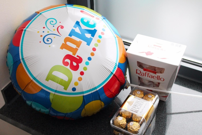 внутри конфеты Raffaelо ещё лежали... Им было безумно приятно))))немцы вообще очень ценят внимание хоть мелочь им уже приятно))) у нас не принято прям подарки дарить, конфеты только... Просто хочется красиво это подать)))