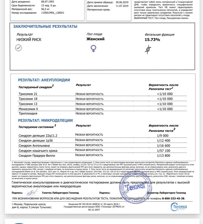 Сдаю НИПТ в Геномеде. Кровь взяли хорошо, сдала расширенную панель.