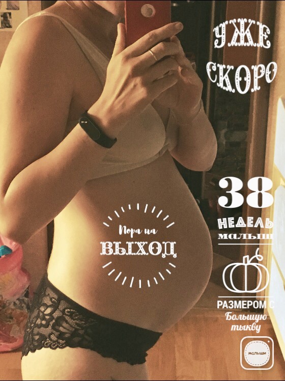 Какой аккуратный животик 🤗 И меня треники жуткие мучают(тоже 38 недель) , но шейка матки еще длинная была. Во вторник ехать к врачу, скажет что там да как. Я как бы уже б и родила что ли😃 за две недели меня просто измучило уже всю