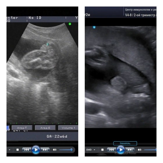 На левом стопкадре с видео - дочка, на правом - малыш, которого сейчас ношу (последнее УЗИ; делала опытный специалист в ЦИР; писюн в кадр не попал почему-то - сказали прижат к мошонке выше, но я так его и не разглядела). Оба между ножек.