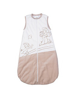 До переворотов был, но не зашел, удобнее накрыть. А потом это вещь, до сих пор пользуемся. Ребенок вертится в кроватке как юла, никакое одеяло не будет на нем всю ночь, а мешок да. Такой можно на зиму если в помещении прохладно. А чаще используются без рукавов или есть с отстегивающимися. Подниз бодик или если с рукавами и теплый, то ничего.