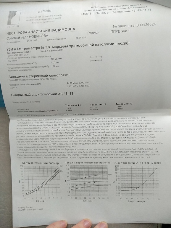 Привет всем! Девочки прикрепляю фото биохимический скрининга 1 триместра. Как вижу вроде ничего страшного или как? Спасибо!