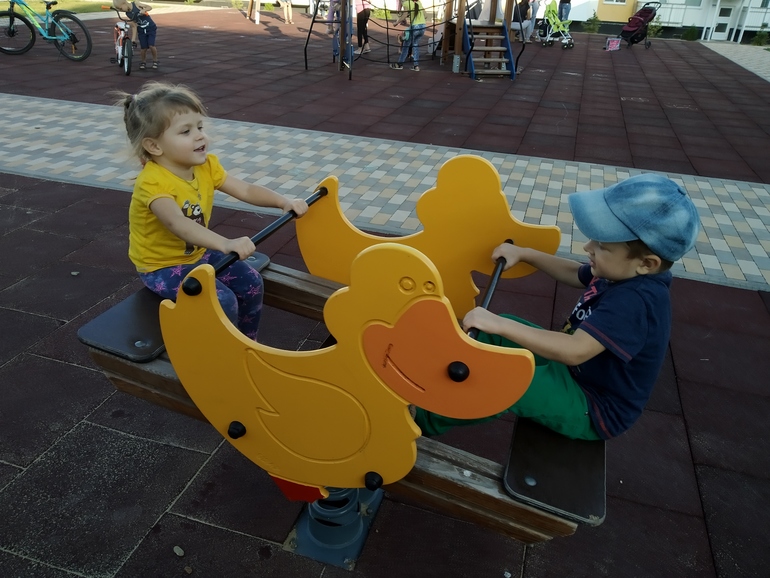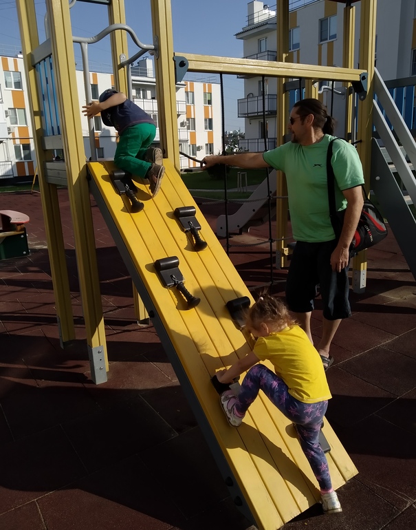 Неделю назад съездили в соседний район в новый ЖК. Там все, как в журнале, красота, для деток много всего. В каждом дворе своя, отличная от другого двора площадка. Жаль, туалетов там нет, побыли немного из-за моего постоянного приспичивания по-маленькому.