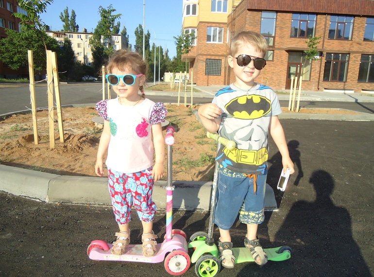 Давно не размещала фото деток моих, наверстаю немного. Козявки мои любимые))) Даша - девочка-авария, редкий день без какой-либо травмы. Нос, губы, подбородок, коленки, локти - постоянно ссадины и кровь. Пацанка до мозга костей. Куклы так и не нужны пока. Шляпкам и панамкам - нет! Кепкам - да! Машинки, мячи, животинки. У Степы постоянно какие-то новые фавориты. Сейчас супермен и мячик-прыгун. Пару месяцев назад фанател от самолетов и супер-щенков. Любит часы, потихоньку транжирит мою коллекцию (я в институте когда училась, штук 15 разных себе понакупила, любила разные, под разную одежду). Обажают свои самокаты. Актеры невероятные с постоянной сменой настроения. С ними так интересно становится разговаривать - такие рассуждения. Обажаю моменты, когда прихожу за ними в сад. "Мамочка, я так по тебе скучала")))). Оба нежные, любят обниматься и целоваться. За себя постоять тоже могут. Могут пообижаться и поплакать горько-горько, но успокаиваются тоже быстро. Очень эмоциональные. Муж говорит, что это с моей стороны все (он был очень удивлен, когда познакомился с будущими свекрами - сказал, что понятно в кого я такая и что у нас итальянская семейка).