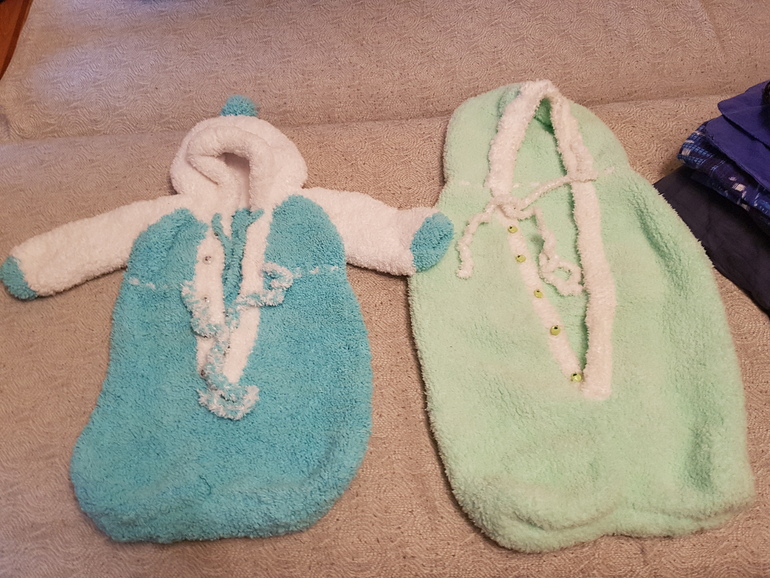 Вот такие вязанные конверты? Когда и как их применять? Так понимаю на комбезы выше их бессмысленно одевать?