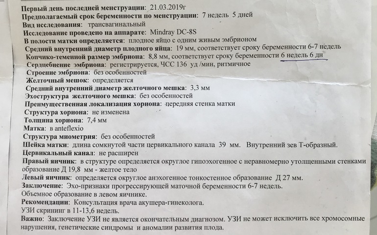 Так у меня по месячным больше 6 , шесть и три дня . А эмбрион так и не появился, неделю назад пя на 5 недель ровно, а неделю спустя на пять недель и четыре дня... динамика не очень.