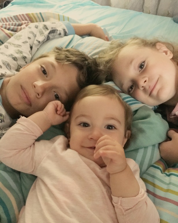 И мои трое старших, обожаю это спонтанное фото. Прибежали утром ко мне в кровать:))