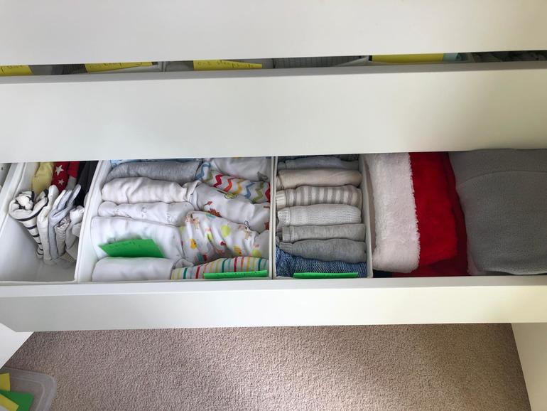 Но и как пока выглядет все в шкафу у дочки (ближе к делу переедет в комод, тк у нас намечается маленькая перестановка, но контейнеры останутся те же, просто из шкафа переедут в комод в другой комнате)