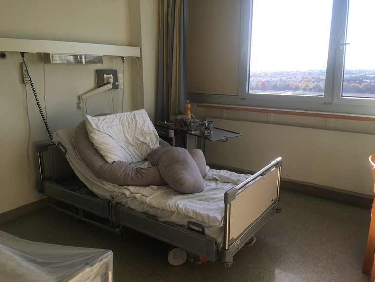 Палаты двух местные. Душ и туалет в палате. Еду три раза в день приносили тоже в палату. На неделю давали меню, из которого можно выбрать, что ты хотел бы на завтра, обед и ужин. Классные кровати, у которых регулируется электронно спинка, поднимается по высоте сама кровать, поднимаются ноги отдельно, вообщем любое положение. Так же кнопка вызова сестрички, если нужно что то, или элементарно воды, звонить и принесут. В комнате у каждого персонально свой небольшой телевизор и наушники, каждый день приходит библиотекарь с книгами. И ну крайне вежливый персонал, они в больнице все таки довольные, будто бы действительно на работе своей мечты, столько позитива не видела не в одной больницы 🏥 Каждый день вечером делают обход просто пожелать спокойно ночи. Так ещё и днём приходит сотрудник, который спрашивает есть ли жалобы на персонал или условия больницы 😳