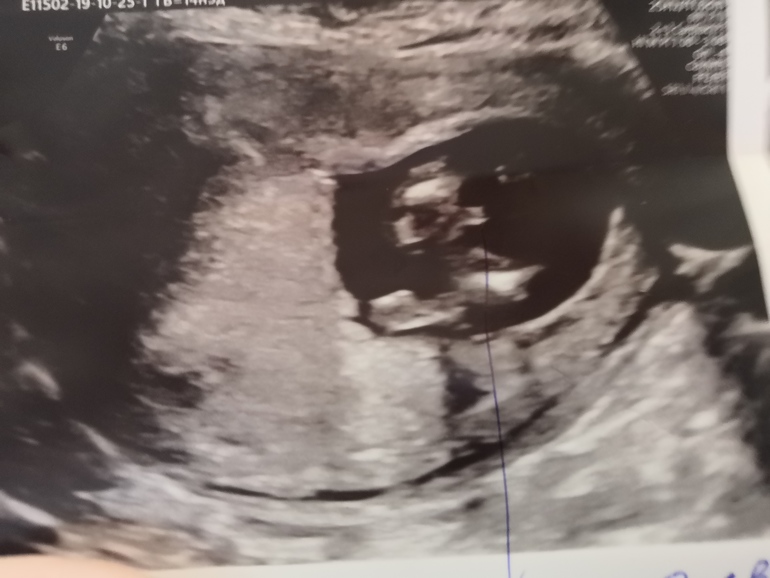 Это фото сегодня. На первом скрининге в 12 недель сказали, на втором узи 3 дня назад подтвердили, лежу на сохранении в больнице. А это был платный 1 скрининг, на него запись большая, только сегодня попала. Врач с больницы сказала не отказываться от записи, поэтому пошла, переживала в силу возраста за бусинку😔