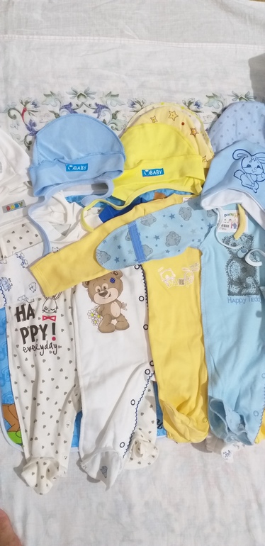 Распашонки и ползунки - это "вчерашний день" наверное уже мало кто ими пользуется: ребенка на руки берете - распашонка/кофточка - вылазиет из ползунков постоянно, когда ребенок начинает ногами дрыгать - ползунки сползают и т.п. Поэтому сейчас в основном боди берут и слипы-человечки которые растегиваются сверху до низу - чтоб просто положить малыша и застегнуть а не крутить и не напяливать через голову. Не набирайте много т.к. детки в первые месяцы быстро растут - штуки по 3 каждого размера. Сейчас распродажи идут - в Дочках Сыночках хорошие скидки на чепчики (от 29руб/шт), шапочки я взяла разных размеров от 150руб.