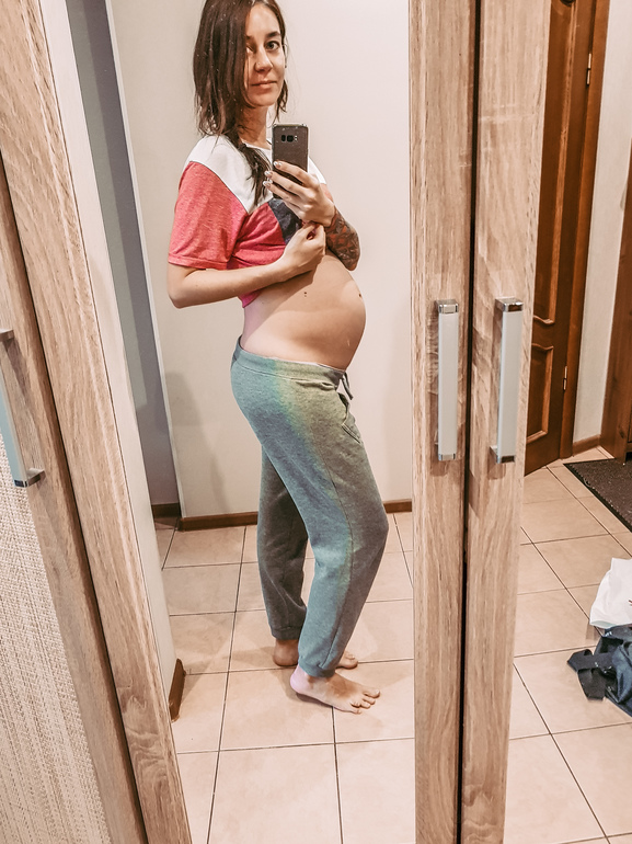Пузо растёт, ОЖ намерили 88 см в ЖК. Через 4 недели уже снимать швы!!! Совсем-совсем мало времени осталось! Осталось купить комод и коляску, всё остальное, в принципе, есть. Сумки в роддом стоят наготове)