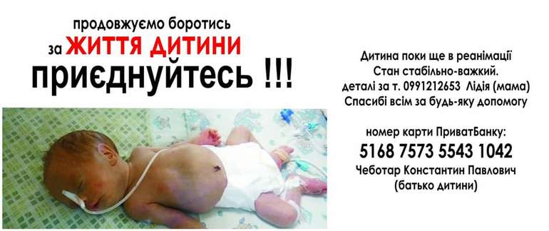 Пост о помощи встретила в фейсбуке. О преждевременно родившемся, моем земляке, никопольчанине. Информацию распостраняю как могу. Фейсбук, вайбер и решила разместить на бб.