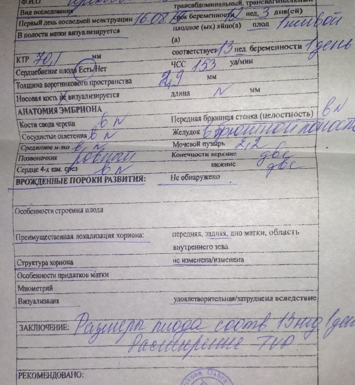 Было ТВП 2,9 мм (все остальное в норме, и кровь тоже). Конечно отправили к генетику, предлагали амниоцентез. В итоге я сделала НИПТ.