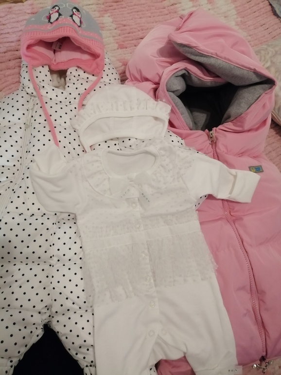 Мы в комбезе и в конверте с подкладкой из шерсти гуляем. Единственное,я хочу шапку без завязок. Этот ор постоянный 🙈,она ещё и потеет, а тут спящей можно одеть спокойно. Светлана с первыми девчачими покупками!!! Сегодня на вб отварилась на 2500 , комбезики накупила, всякие . Я думала по минимуму покупать буду.а сегодня решила,я так мечтала о дочке, почему не купить помодничать.. 😁❤